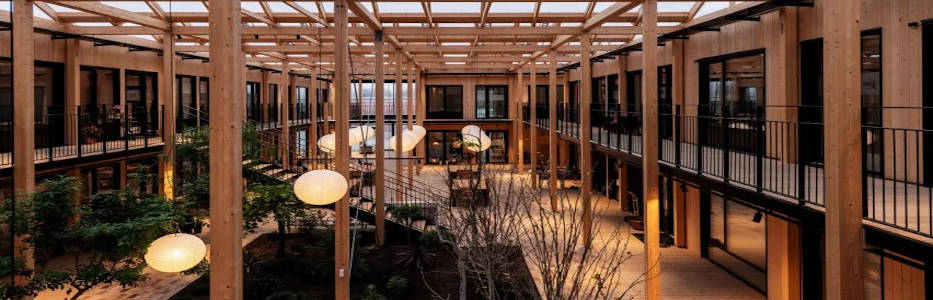 SINGAPORE: A grid of thin cross-laminated timber columns frames communal spaces at the centre of…